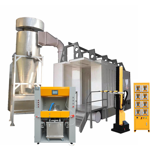 El sistema automático de pintura en polvo aplica una cabina de pintura PP antiestática con recuperación ciclónica, un centro de gestión de polvo y un equipo de pintura automático profesional, que tiende a maximizar la eficiencia de recuperación de polvo y minimizar el desperdicio de polvo, ahorra costos de producción y garantiza un taller libre de polvo.