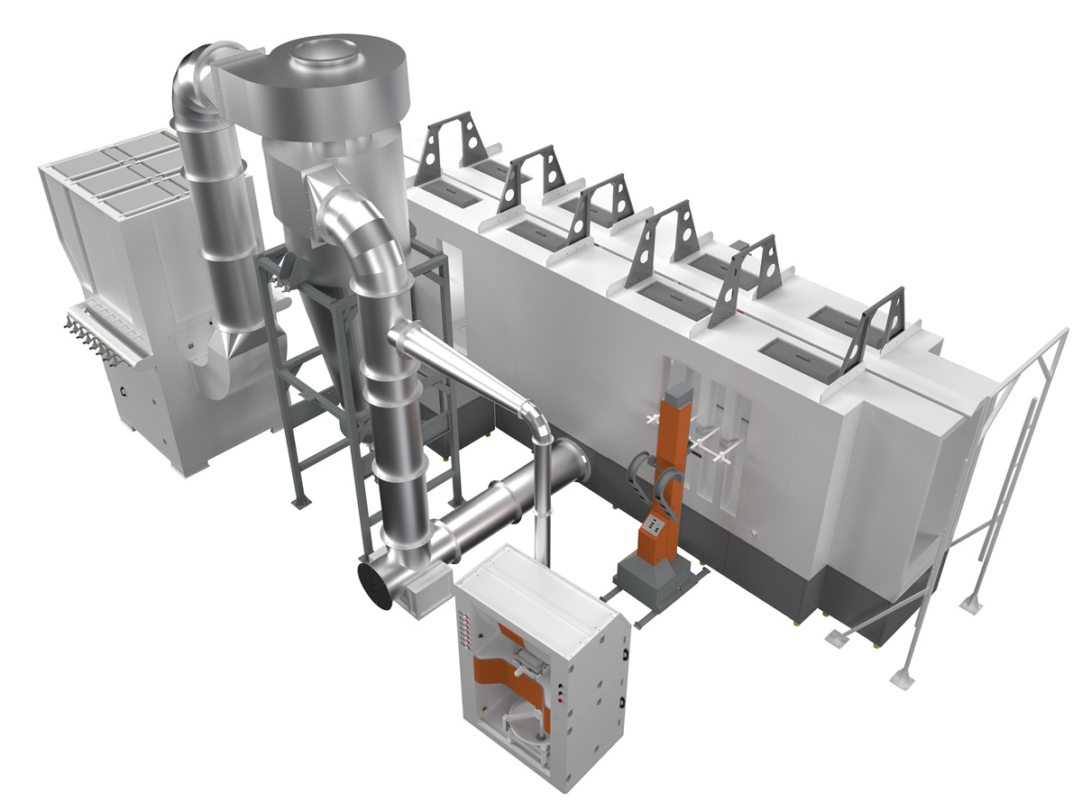 2. Reciprocador de alta capacidad con capacidad para hasta 24 pistolas de pulverización de polvo.